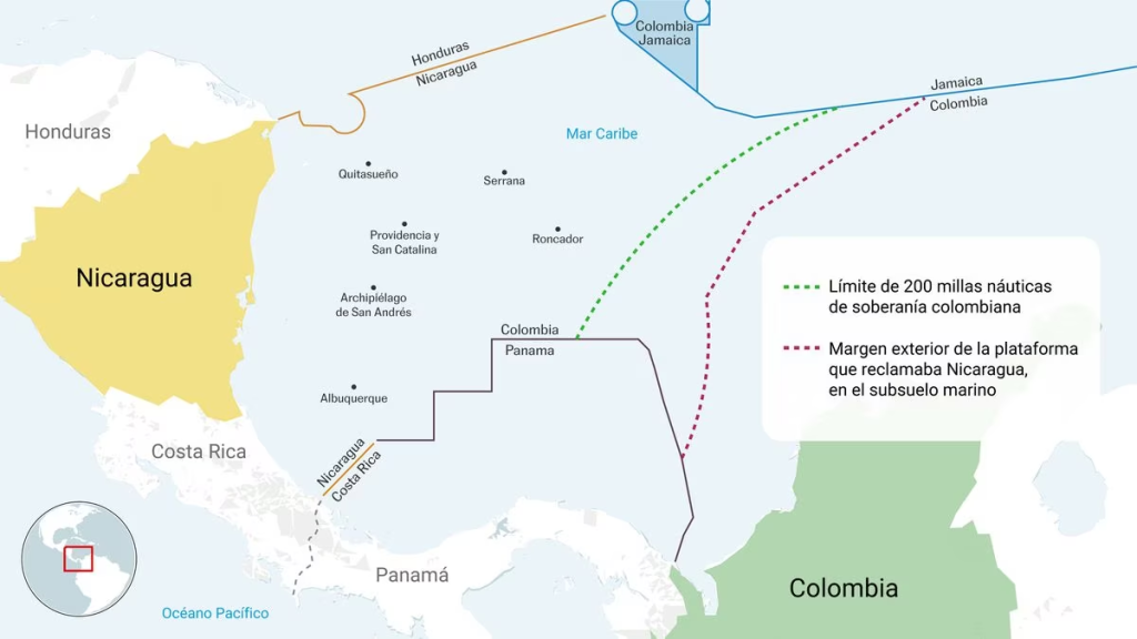 Con el fallo queda definido el mar territorial colombiano, ya que, en 2012, un fallo anterior del TIJ reafirmó su soberanía sobre las islas de San Andrés, Providencia y Santa Catalina. Están situadas a unos 110 kilómetros de la costa nicaragüense.