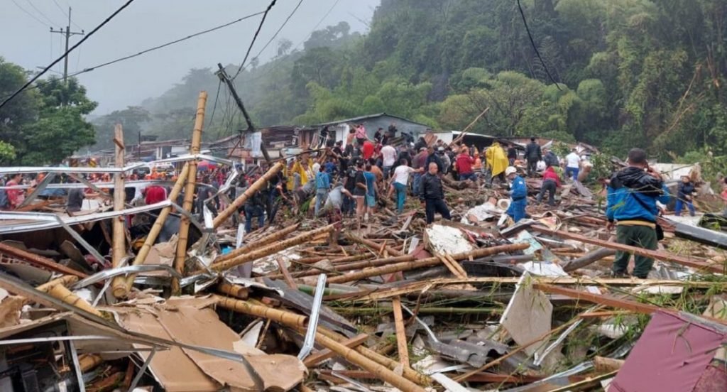 En las imágenes compartidas por personas presentes en el lugar de la emergencia se puede ver la magnitud del derrumbe que sepultó varias casas ubicadas a la orilla del río Otún.