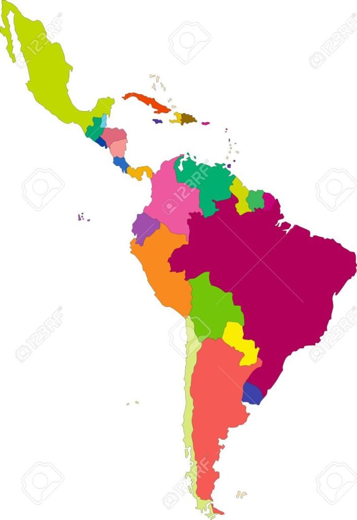 Vector highly detailed political map of Latin America and their capitals. All elements are separated in editable layers clearly labeled. EPS 10