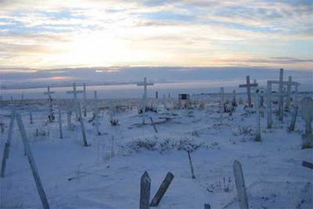 Pero la gripe viajó más lejos que la guerra. Dicen en Brevig que el virus les llegó por carta, en el trineo que les traía el correo desde Nome. Es posible que el primer esquimal se infectara así, y que después contagiara a los demás al visitarles, o al recibir sus visitas. Lo único seguro es que el virus hizo bien su trabajo. En el cementerio, una cruz algo más alta que las demás deja leer hoy al raro visitante: