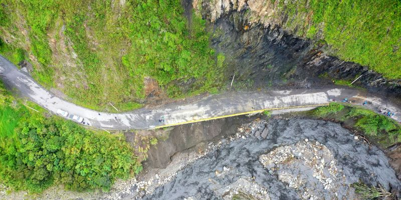 El sobrevuelo con dron realizado por la UNGRD confirmó la reactivación del deslizamiento ocurrido en julio de 2023. A partir de esa evaluación, se delimitó un nuevo polígono de amenaza y se estableció un perímetro de evacuación preventiva.