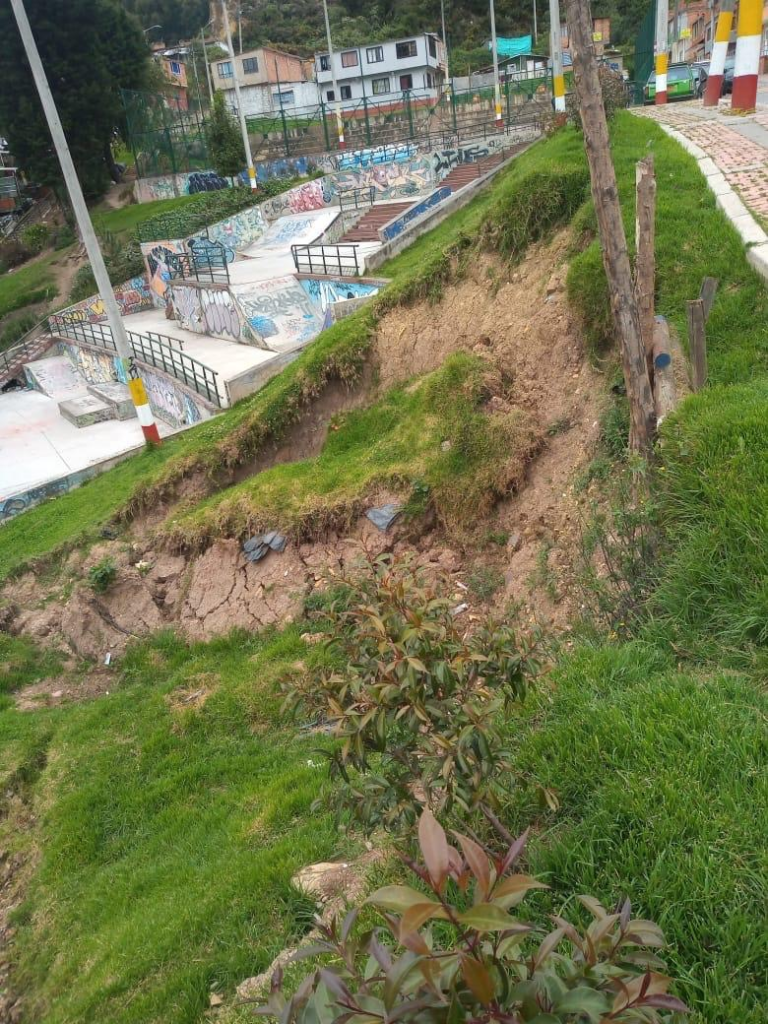 Bogotá, marzo de 2026. News Press Service. “En el barrio Los Alpes, Sector Futuro en uno de nuestros recorridos evidenciamos una zona empinada aledaña a un parque infantil un desprendimiento de tierra que pone en riesgo a los niños y personas que hacen uso de estos espacios y a pesar, que se han acercado a instancias como la alcaldía local no han sido escuchados frente a este hecho.