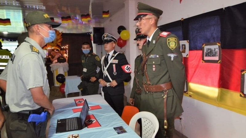 Luego de que la Policía Nacional difundió fotografías de la actividad en sus redes sociales, muchos en Colombia rechazaron la manera en que se representó el periodo de la Alemania nazi que causó millones de muertes, principalmente de la comunidad judía en Europa.
